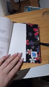 J’y ai ajouté un élastique et un bouton afin de fermer la protection et encore plus sécuriser le livre.